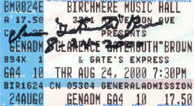 Gatemouth along with his Jazz oriented 'Gates Express" played The Birchmere, Alexandria, Virginia on August 24, 2000. Here are a few aftershow fan shots. Thanks Gatemouth! |