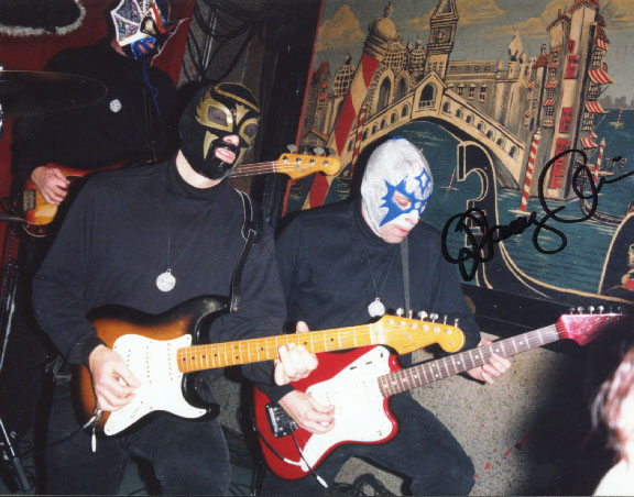 I could go on about how Los Straitjackets came to be, and why they are so well regarded, but why waste time when all one need do is pick up 3 CD's (The Utterly Fantastic And Totally Unbelievable Sound Of Los Straitjackets, Viva! Los Straitjackets, Sing Along With Los Straitjackets), give them a listen, become a convert, and then if one wants to (or even needs to) know more, check out the group interviews provided via links on this tribute page, or dig around their official website. |